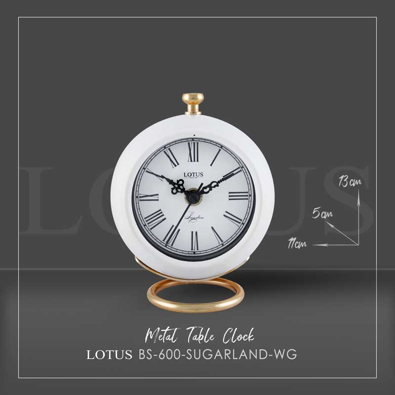 شرکت تولیدی لوتوس ساعت های رومیزی خود را در دو دسته چوبی و فلزی قرار می دهد. این دسته از محصولات لوتوس با رنگ های استاتیک و آبکاری طراحی و تولید شده اند.