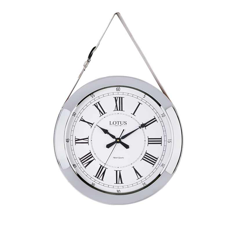 ساعت دیواری چرم و فلز لوتوس کد LMT-1216 رنگ SILVER
