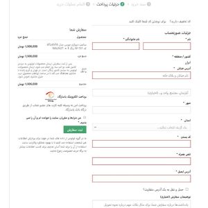 - مرحله پنجم تکمیل سفارش و پرداخت اینترنتی است. اطلاعات مورد نیاز را وارد کرده و روی کادر “پرداخت” کلیک نمایید.
