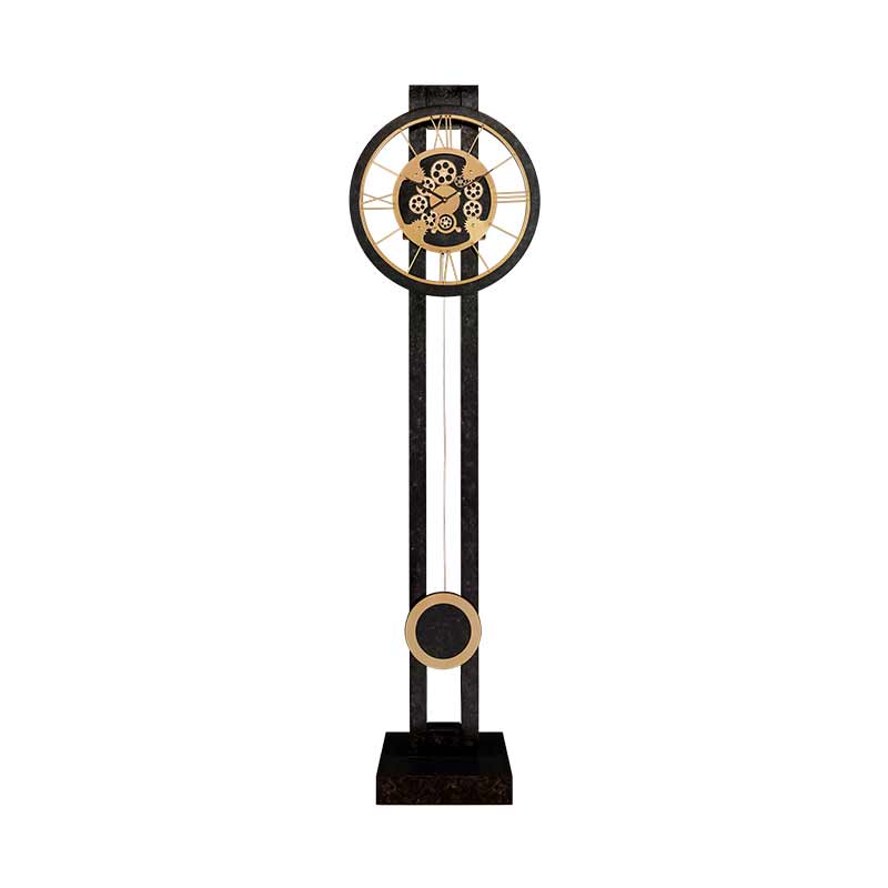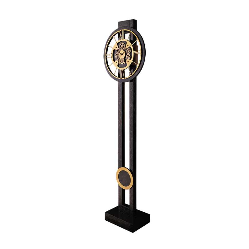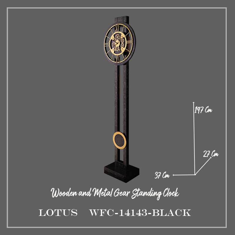 ساعت ایستاده کد WFC-14143 رنگ BLACK با طراحی منحصر به فرد چرخدندهای، ترکیبی چشمنواز از سبک صنعتی و مدرن را به فضای شما اضافه میکند. بدنهی ساعت از چوب با بافت طبیعی ساخته شده که جلوهای لوکس ایجاد مینماید. در بخش بالایی، صفحهی گرد با چرخدنده قرار گرفته است که هنگام نگاه کردن، حس حرکت و پویایی در فضا ایجاد میکند. پاندول طلایی در قسمت پایین، طرح را کامل کرده و به ساعت جلوه ای خاص و متفاوتی میبخشد.