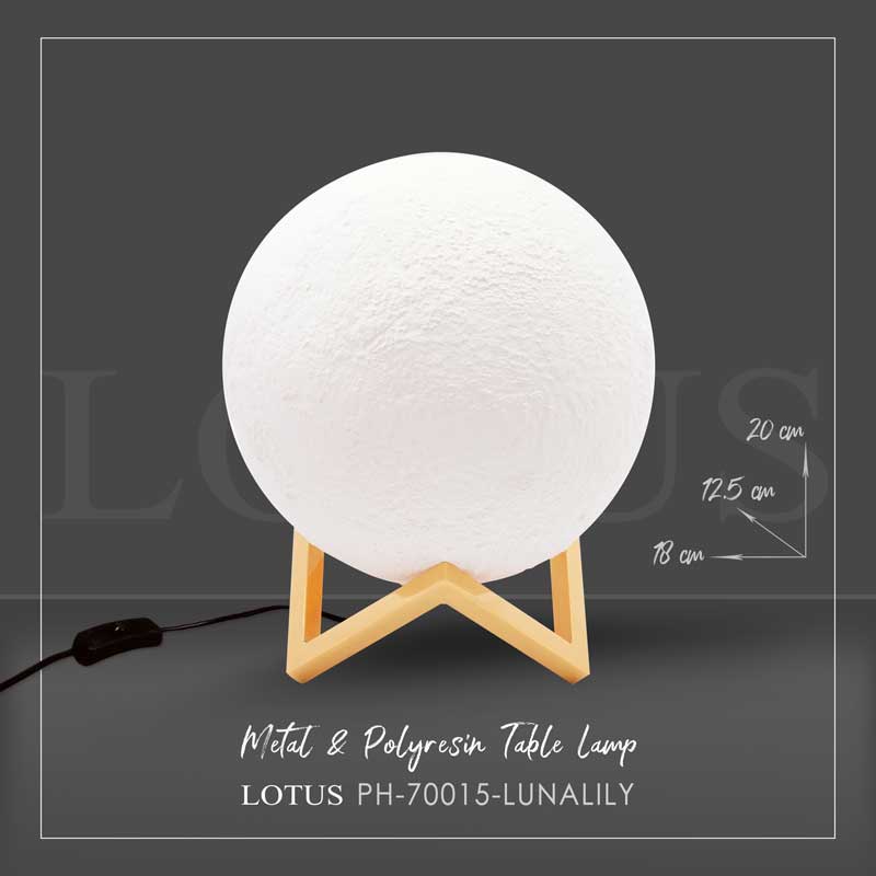 آباژور رومیزی ماه مدل لونالیلی، ترکیب پلی رزین و فلز آبکاری طلایی است. آباژور رومیزی ماه هم چشم نواز و هم بسیار آرامشبخش و دوست داشتنی است. نقشه روی کره ماه که از جنس پلی رزین است و پایه های شکیل فلزی تمام آبکاری، این مدل را خاص و متفاوت کرده است.